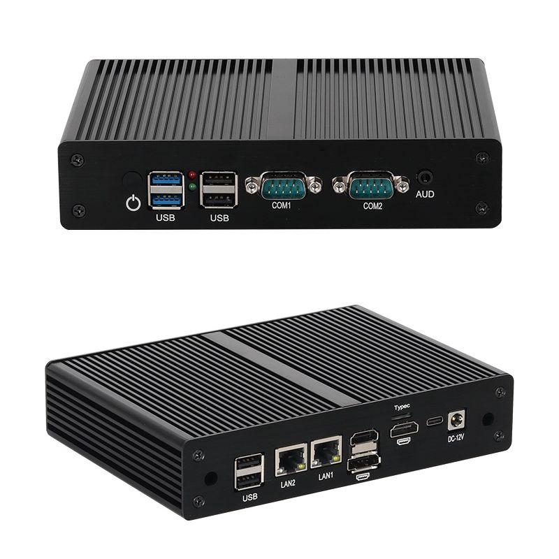Endüstriyel Mini PC'miz Intel N100 dört çekirdekli işlemciye ve fansız soğutma mimarisine sahiptir.donanımın sert endüstriyel ortamlarda ideal bir çalışma sıcaklığını korumasını sağlamakKompakt biçim faktörü, herhangi bir yere uygun bir kurulum sağlayarak minimum alanı işgal ediyor.